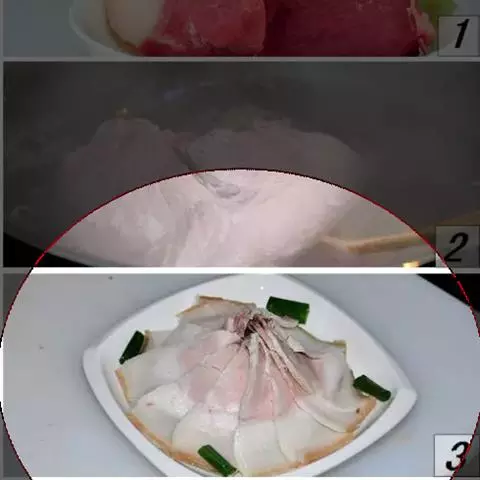 1.将精肉洗净,切成10×5×1 厘米的厚片,再剖上十字花刀,然后再切为3片。