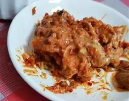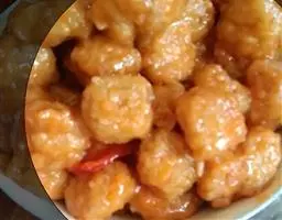 荔枝肉 2、清汤加调料调成卤汁。肉块与荸荠下锅炸2分钟,呈荔枝状捞出。