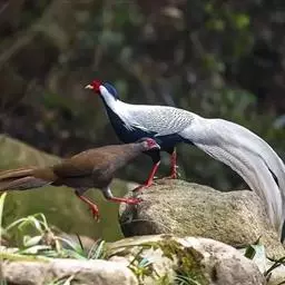 大眼斑雉:体长160-200厘米,雄鸟尾长105-143厘米;雌鸟体长72-76厘米,雌鸟尾长30…