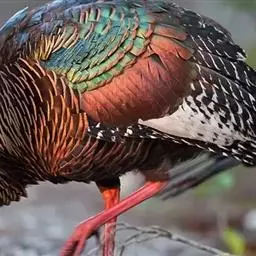 眼斑吐绶鸡:是火鸡科的两种鸟类之一。体型比普通火鸡略小些,体长1米左右,体重2.4-5.4千克,…