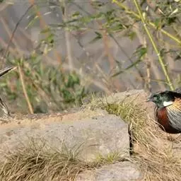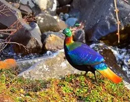 黄腹角雉:是鸟纲、雉科中国特产的一种鸟类。体长约50-65厘米。雄鸟上体栗褐色,…