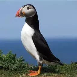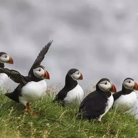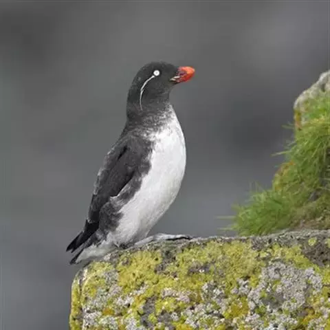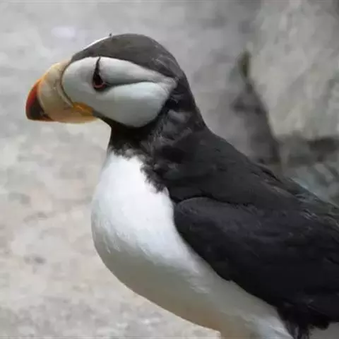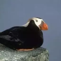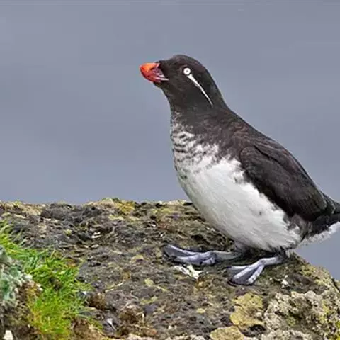 角嘴海雀,是海雀科、角嘴海雀属的中型海鸟,体长32-41厘米,嘴短而粗呈圆锥状、橙色。夏羽上嘴基部…