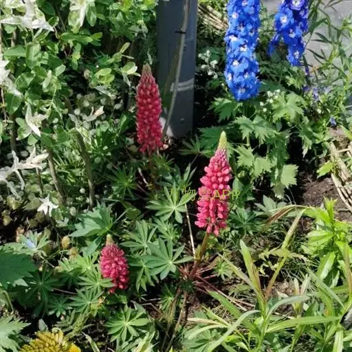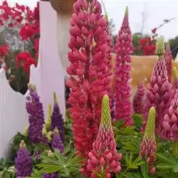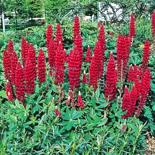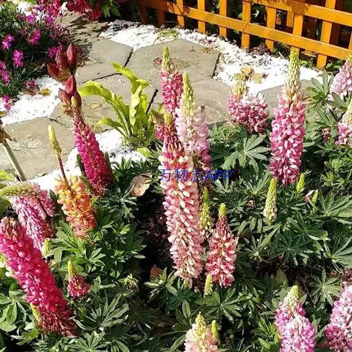 羽扇豆俗称鲁冰花,花序挺拔、丰硕,花色艳丽多彩,有白、红、蓝、紫等变化,而且花期长,可用于片植或在带状花坛群体配植,同时也是切花生产的好材料。