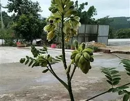种子间节荚状;有种子3-4粒。种子卵形,扁平,黄色,具棕色或红色斑纹,光滑。花期3-5月,果期4-7月。 [2-3]