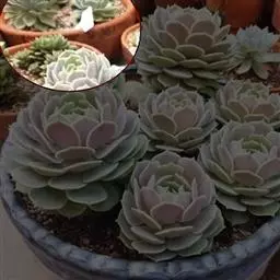 大和锦是景天科拟石莲花属的多肉植物。肉质叶排成紧密的莲座状,广卵形至散三角卵形,背面突起呈龙骨状,…