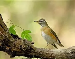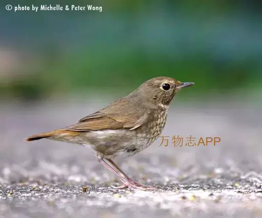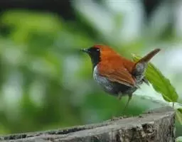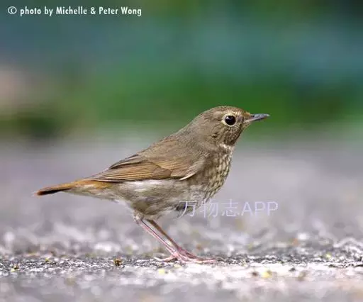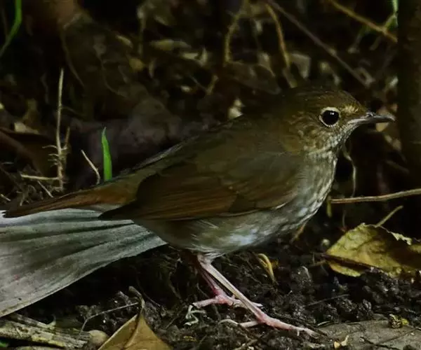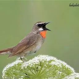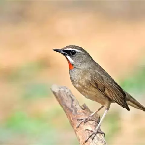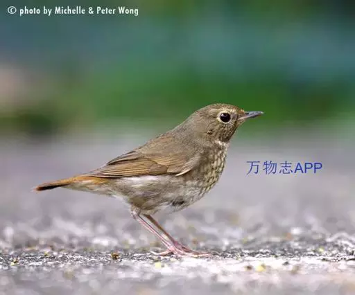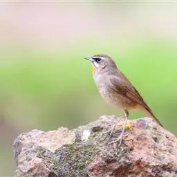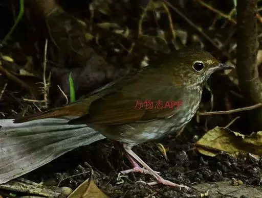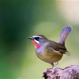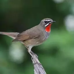 红尾歌鸲(学名:Luscinia sibilans):体长13-15厘米。上体橄榄褐色。尾羽棕栗色,眼先和颊黄褐色,眼周淡黄褐色。下体颏、喉污灰白色,微沾皮黄色,胸部具橄榄色扇贝形纹,两胁橄榄灰白色,腹部和尾下覆羽与颏、喉同。尾部棕色。虹膜褐色;嘴黑色;脚粉褐色。