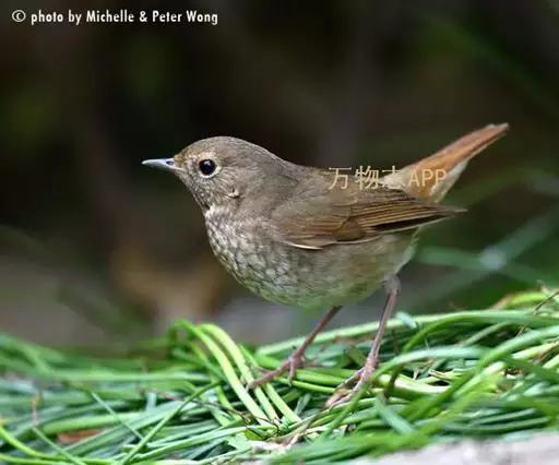 红尾歌鸲:体长13-15厘米。上体橄榄褐色。尾羽棕栗色,眼先和颊黄褐色,眼周淡黄褐色。…
