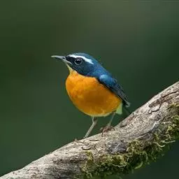 金色林鸲是鹟科、鸲属小型鸟类,体长12-15厘米。头顶至背黄橄榄绿色,眼先和头侧黑褐色,眉纹金橙黄色。…