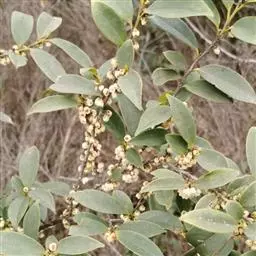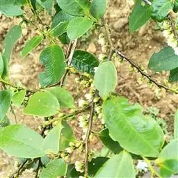 花1-2朵生于叶腋,花梗长约2毫米。雄花:小苞片2,近圆形;萼片5,质稍厚,几圆形,长1-1.5毫米,顶端圆而有小尖头,无毛;花瓣5,白色,长圆形或长圆状倒卵形,长约3.5毫米;雄蕊约20枚,花药具分格,退化子房无毛。雌花的小苞片和萼片与雄花同;花瓣5,卵形,长约3毫米;子房圆球形,3室,无毛,花柱长约1毫米,顶端3裂。果实圆球形,直径3-4毫米,成熟时黑色。花期10-11月,果期次年6-8月 。