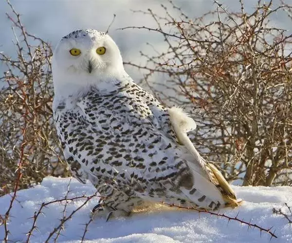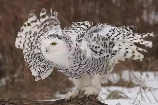 雪鸮(学名:Bubo scandiaca)是鸱鸮科的一种大型猫头鹰,头圆而小,面盘不显著,没有耳羽簇。嘴的基部长满了刚毛一样的须状羽,几乎把嘴全部遮住。虹膜金黄色,嘴铅灰色或角褐色,爪基灰色,末端黑色。它的羽色非常美丽,通体为雪白色,也有的时候布满暗色的横斑。