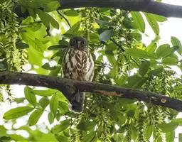 雌鸟和雄鸟相似,通体亦为白色,但头部有褐色斑点,背有暗色横斑,腰具成对褐色斑点,胸腹和两胁亦具暗色横斑。尾具3-5对褐色横斑。其余似雄鸟。幼鸟和雌鸟相似,而且横斑更显著。