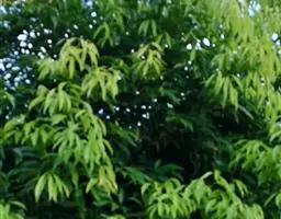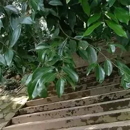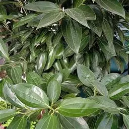 钝叶樟(Cinnamomum bejolghota (Buch.-Ham.) Sweet):又名钝叶桂、假桂皮、土桂皮、青樟木、大叶山桂、香桂楠,樟科樟属小至大乔木,高5-25米,胸径达30厘米;树皮青绿色,有香气。枝条常对生,粗壮, 小枝圆柱形或钝四棱形,干时红褐色,初时被微柔毛,后变无毛。芽小,卵珠形,芽鳞密被 绢状毛。叶近对生,椭圆状长圆形,长12-30厘米,宽4-9厘米,先端钝、急尖或渐尖,基部近圆形或渐狭,硬革质,上面绿色,光亮,下面淡绿或黄绿色,多少带白色,两面极无毛,三出脉或离基三出脉。花期3-4月,果期5-7月。
