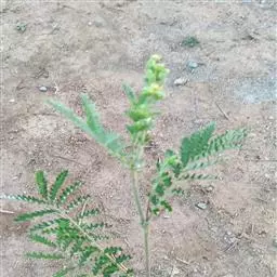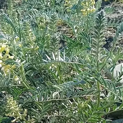 苦豆子(学名:Sophora alopecuroides L.)是豆科,槐属草本或基部木质化成亚灌木状植物,高可达1米。羽状复叶;托叶着生于小叶柄的侧面,钻状,小叶对生或近互生,纸质,叶片披针状长圆形或椭圆状长圆形,侧脉不明显。总状花序顶生;花多数,密生;苞片似托叶,脱落;花萼斜钟状,花冠白色或淡黄色,旗瓣形状多变,翼瓣常单侧生,龙骨瓣与翼瓣相似,先端明显具突尖,背部明显呈龙骨状盖叠,柄纤细,花丝不同程度连合,柱头圆点状,荚果串珠状,种子卵球形,稍扁,5-6月开花,8-10月结果。