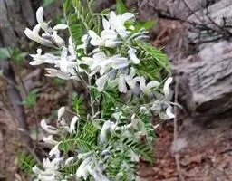 总状花序顶生;花多数,密生;花梗长3-5毫米;苞片似托叶,脱落;花萼斜钟状,5萼齿明显,不等大,三角状卵形;花冠白色或淡黄色,旗瓣形状多变,通常为长圆状倒披针形,长15-20毫米,宽3-4毫米,先端圆或微缺,或明显呈倒心形,基部渐狭或骤狭成柄,翼瓣常单侧生,稀近双侧生,长约16毫米,卵状长圆形,具三角形耳,皱褶明显,龙骨瓣与翼瓣相似,先端明显具突尖,背部明显呈龙骨状盖叠,柄纤细,长约为瓣片的二分之一,具1三角形耳,下垂;雄蕊10,花丝不同程度连合,有时近两体雄蕊,连合部分疏被极短毛,子房密被白色近贴伏柔毛,柱头圆点状,被稀少柔毛。