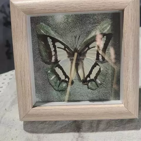 翅淡绿色,前后翅外缘有黑色宽带,前翅黑带中有淡绿色斑列,后翅黑带间为淡绿色带。后翅两尾呈剪形突出,黑褐色,二尾蛱蝶前后翅斑纹酷似我国古代军事上常用的弓箭图形,又称为“弓箭蝶”。