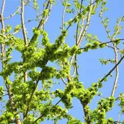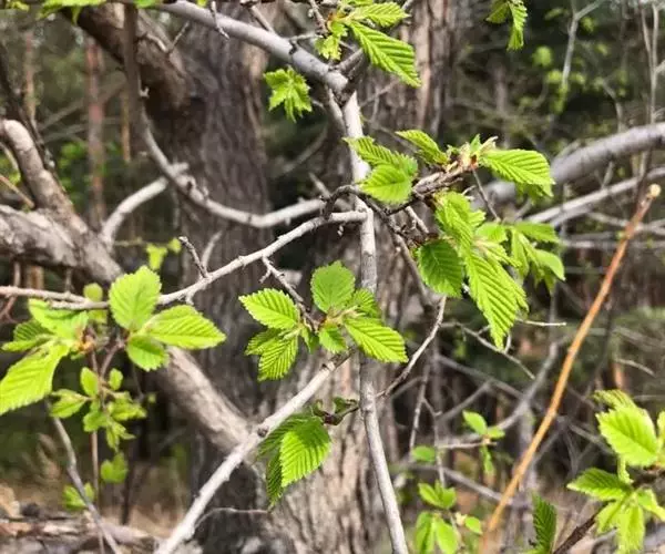 树皮暗灰色,粗糙,不规则纵裂。幼树枝条直立,且被白色毛;老树枝条先端下垂,有时木栓质发达成为瘤状。…