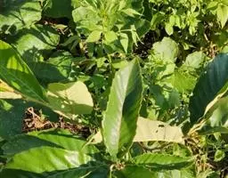 南非叶在中国东南沿海地区被称为“将军叶”,是由于它生长能力强,四季皆宜种;俗称:苦茶。南非叶为菊科斑鸠菊属植物扁桃斑鸠菊的叶。扁桃斑鸠菊原产于热带非洲,在尼日利亚等地被当做一种蔬菜。