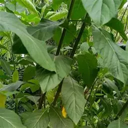 扁桃斑鸠菊(学名:Vernonia amygdalina Del.):是一种2-5米的灌木或小乔木,树皮粗糙。叶绿色椭圆形,长达20厘米。头状花序中等大,排列成伞房状或总状,数个密集,具同型的两性花,花多数。瘦果圆柱状或陀螺状,具棱或具肋,顶端截形,基部常具胼胝质,被短毛,常具腺;冠毛通常2层,稀1层,内层细长,糙毛状,脱落或宿存,外层极短,刚毛状。