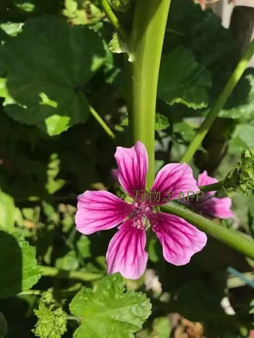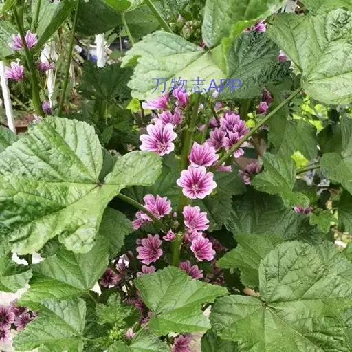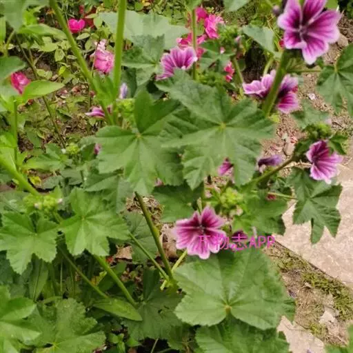 锦葵是二年生或多年生直立草本植物,高50-90厘米,分枝多,疏被粗毛。叶圆心形或肾形,具5-7圆齿状钝裂片,长5-12厘米,宽几相等,基部近心形至圆形,边缘具圆锯齿,两面均无毛或仅脉上疏被短糙伏毛;叶柄长4-8厘米,近无毛,但上面槽内被长硬毛;托叶偏斜,卵形,具锯齿,先端渐尖。
