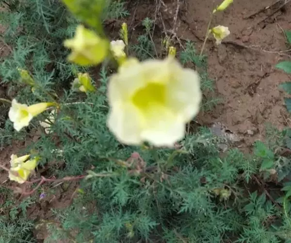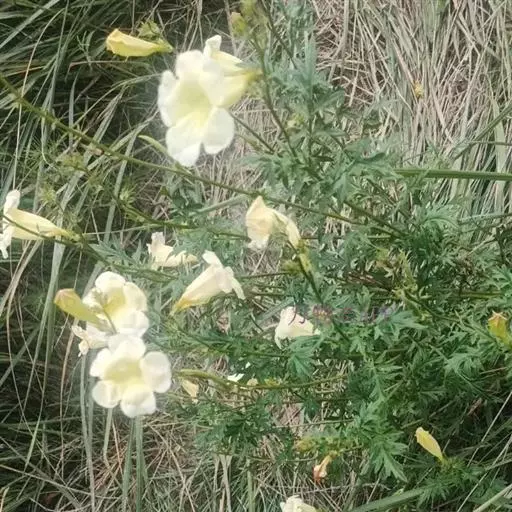 黄花角蒿(变种)为紫葳科年生至多年生草本植物,具分枝的茎,高达80厘米,根近木质而分枝。生于海拔2000-2600米山坡。高山花卉,花淡黄色,钟状漏斗形,具有较好的观赏性。此外,同属植物黄波罗花之别名亦称黄花角蒿。