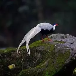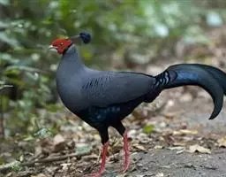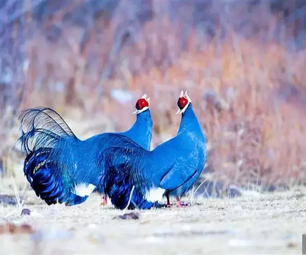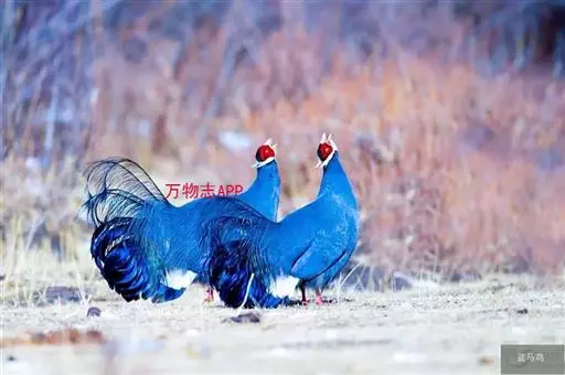 蓝马鸡(学名:Crossoptilon auritum)是珍稀名贵的禽类,羽毛美丽,可作装饰用,头侧绯红,耳羽簇白色、突出于颈部顶上,通体蓝灰色,中央尾羽特长而翘起。尾羽披散下垂如马尾,故名蓝马鸡。