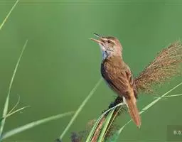 大苇莺:属小型鸟类,雌雄两性羽色相似。眉纹淡棕黄色;眼褐色;翅褐色具淡棕色的边缘;尾羽亦褐色,…