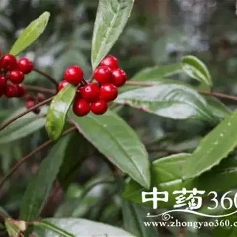 出自《本草图经》:百两金,叶似荔枝,初生背面俱青,结花实后,背紫面青。苗高二、三尺,有干如木,…
