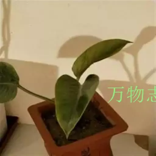绿帝王蔓绿绒,天南星科蔓绿绒属,绿帝王茎干节间短,幼龄时看似叶片基生,但植株长大下部老叶脱落后,其木质化的茎就会显露出来,呈灰褐色;叶片巨大,常呈莲座状簇生于茎顶;叶片深绿色,并有光泽;宽披针形,基部心形,尖端常微下垂。