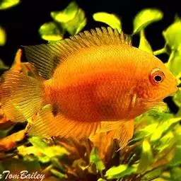 金菠萝鱼,Cichlasoma severum,慈鲷科丽体鱼属。成鱼体长20~25cm,厚侧扁形,…