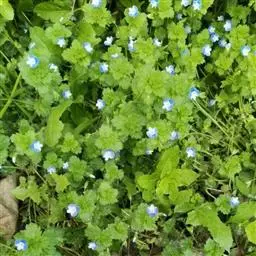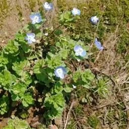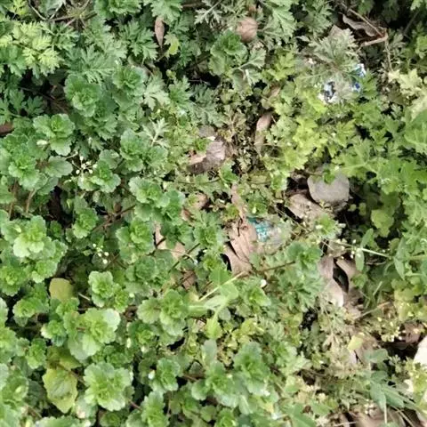 婆婆纳(拉丁文名:Veronica didyma Tenore ):一年至二年生草本植物,有短柔毛。有蓝、白、粉三种颜色。茎自基部分枝,下部匍匐地面。三角状圆形或近圆形的叶子在茎下部对生,上部互生,边缘有圆齿。早春开紫红色小花,单生于苞腋。果期3-5月。