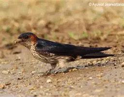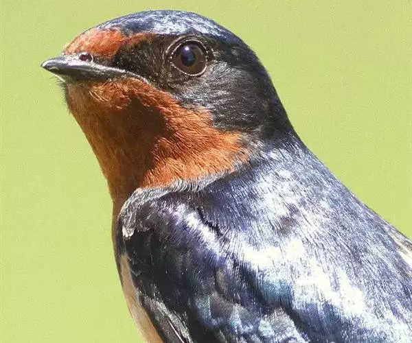 家燕雌雄羽色相似。前额深栗色,上体从头顶一直到尾上覆羽均为蓝黑色而富有金属光泽。两翼小覆羽、内侧覆羽和内侧飞羽亦为蓝黑色而富有金属光泽。初级飞羽、次级飞羽和尾羽黑褐色微具蓝色光泽,飞羽狭长。尾长、呈深叉状。最外侧一对尾羽特形延长,其余尾羽由两侧向中央依次递减,除中央一对尾羽外,所有尾羽内翈均具一大型白斑,飞行 时尾平展,其内翈上的白斑相互连成“V”字形。颏、喉和上胸栗色或棕栗色,其后有一黑色环带,有的黑环在中段被侵入栗色中断,下胸、腹和尾下覆羽白色或棕白色,也有呈淡棕色和淡赭桂色的,随亚种而不同,但均无斑纹。 虹膜暗褐色,嘴黑褐色,跗蹠和趾黑色。 幼鸟和成鸟相似,但尾较短,羽色亦较暗淡。