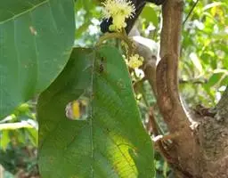 2、整地造林:对选好的造林地,第一年秋季要进行打穴备耕,穴规格为80厘米×80厘米×30厘米,每穴可施农家肥1~2担,栽植时要做到苗正根舒,踏实土,浇足定根水。初植密度可用1.5米×1.5米(每公顷4800株左右)或2米×1.5米(每公顷3300株左右)。进入盛果期后,应逐渐进行疏伐(主要是伐除雄株),最后每公顷保留1500~1800株左右。在疏伐时。要间隔适当距离保留一株做授粉树,一般每公顷保留120~150株雄株。