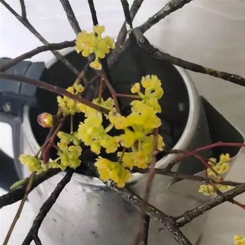 伞形花序单生或簇生,总梗细长,长6-10毫米;苞片边缘有睫毛;每一花序有花4-6朵,先叶开放或与叶同时开放,花被裂片6,宽卵形;能育雄蕊9,花丝中下部有毛,第3轮基部的腺体具短柄;退化雌蕊无毛;雌花中退化雄蕊中下部具柔毛;子房卵形,花柱短,柱头头状。