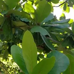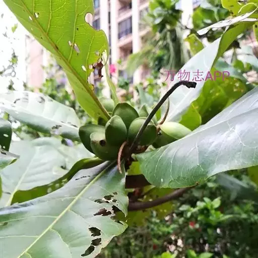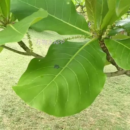 大乔木,高15米或更高,树皮褐黑色,纵裂而剥落状;枝平展,近顶部密被棕黄色的绒毛,具密而明显的叶痕。叶大,互生,常密集于枝顶,叶片倒卵形,长12-22厘米,宽8-15厘米,先端钝圆或短尖,中部以下渐狭,基部截形或狭心形,两面无毛或幼时背面疏被软毛,全缘,稀微波状,主脉粗壮,上面下陷而成一浅槽,背面凸起,且于基部近叶柄处被绒毛,侧脉10-12对,网脉稠密;叶柄短而粗壮,长10-15毫米,被毛。