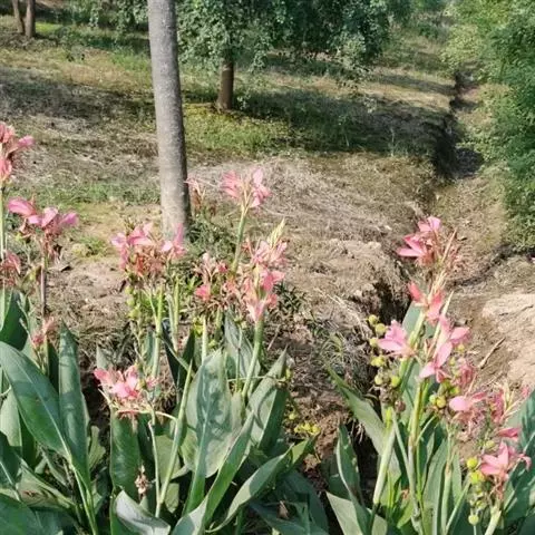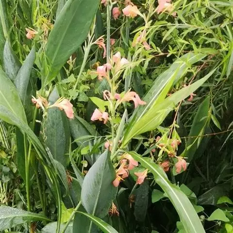 粉美人蕉:是一种球根草本植物。根茎延长,株高1.5-2米;茎绿色。叶片披针形;总状花序疏花,单生或…