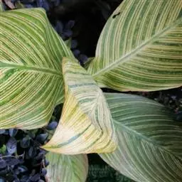 金脉美人蕉叶片淡黄色,叶脉绿化,叶缘具红边,全缘,大花美人蕉之变种