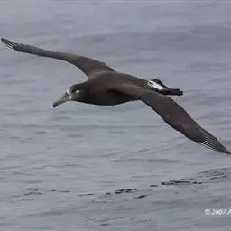 黑背信天翁:是一种中等体型的信天翁,81厘米长,体重2210-2800克,是一种有极长翼羽的大鸟,…