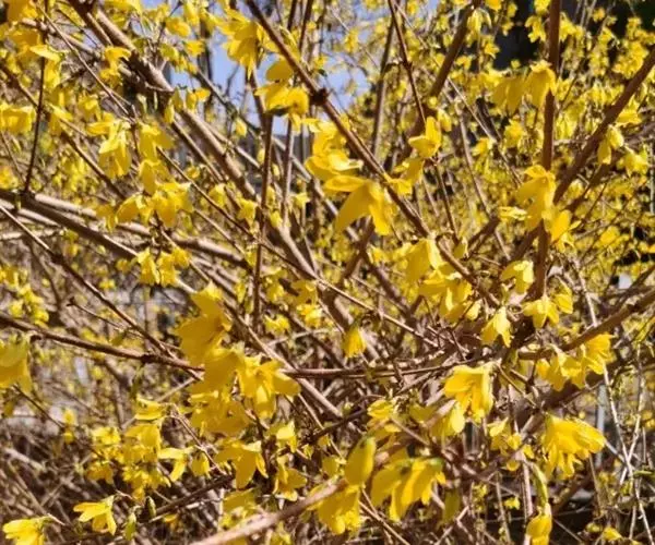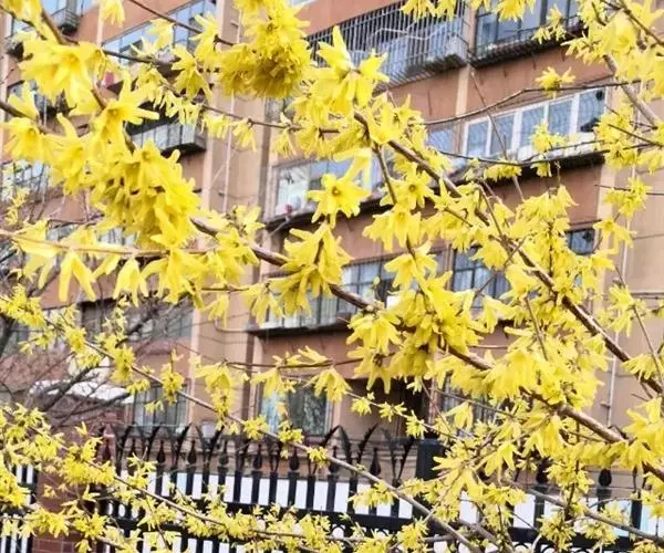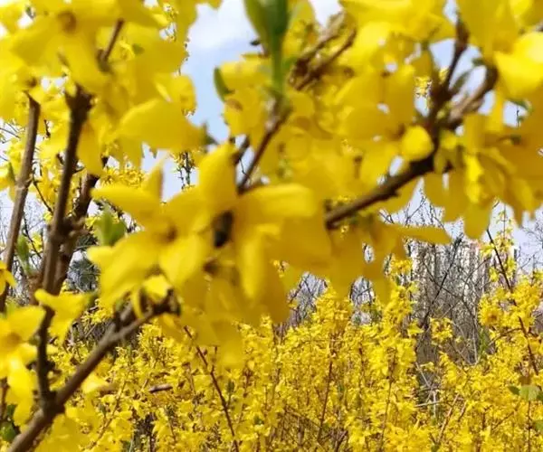 据公园的育花专家讲,连翘属名贵花木,往年均在阳春三月开花,可能由于植物花期后气候与开花的季节相似,导致植物内部规律发生紊乱,诱使连翘反季开花。“二次开花”竞相争艳,实属罕见。