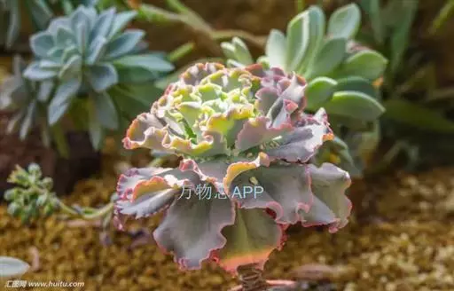 高砂之翁(外文名Echeveria ‘Takasago No Okina') 是景天科,拟石莲花属的多肉植物。特征是其边缘呈大波浪卷形的宽大叶片,颜色随光照变化从蓝紫到橙红变幻不定,是一种具有别样魅力的拟石莲品种。
