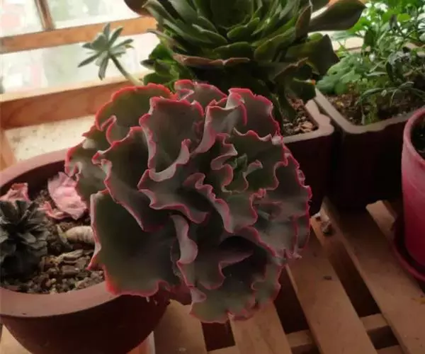 薄叶蓝鸟 叶片蓝绿色,叶尖红色,带粉,花型紧凑,非常漂亮。原产于墨西哥,现世界各地均有栽培。