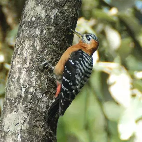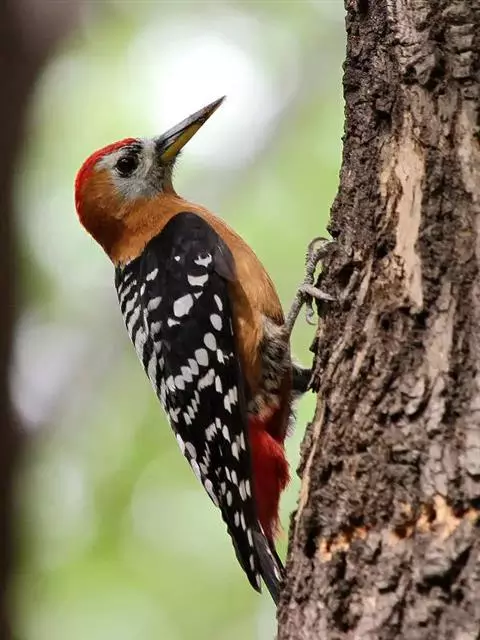 棕腹啄木鸟为啄木鸟科,啄木鸟属是中等体型的鸟类,体长约20厘米。头顶部具红色斑带。脚强健,有趾4个,…