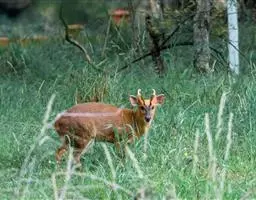 赤麂是鲸偶蹄目鹿科麂属哺乳动物,又名红麂、印度麂、角麂、吠鹿。脸部较狭长,额部V字形黑纹特别明显,…
