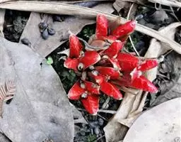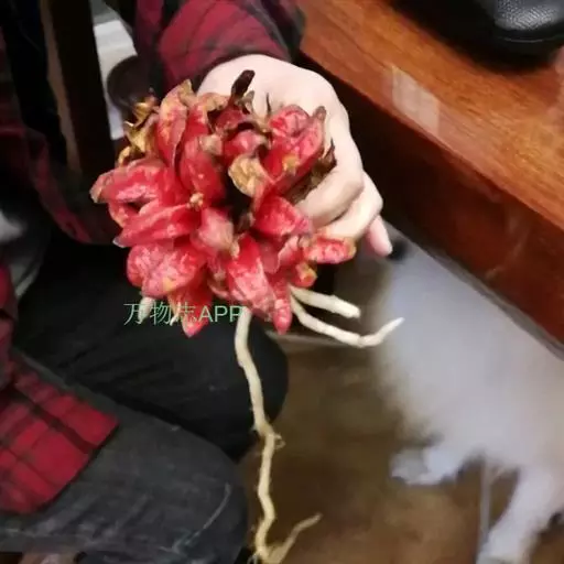 在春日和炎夏,碧叶婆娑,葳蕤成丛。每当秋风萧瑟、百花纷谢时节,其根茎处便会涌现出硕大的紫红色蕾果,开裂时妖艳妩媚、芬芳怡人,犹如奇花绽放。