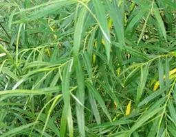叶片披针形或椭圆状披针形,长25-35厘米,宽3-6厘米,顶端具尾尖,基部渐狭,叶背被极疏柔毛至无毛;叶柄长0.8-1.2厘米;叶舌2裂,膜质,长4-7毫米,具褐色条纹。