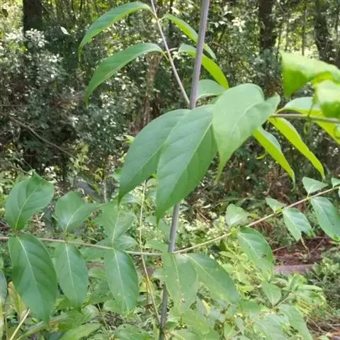 银叶郎德木叶片细长,披针形,正面绿色有光泽,背面带银白色,故名。花较小,小花聚集生。