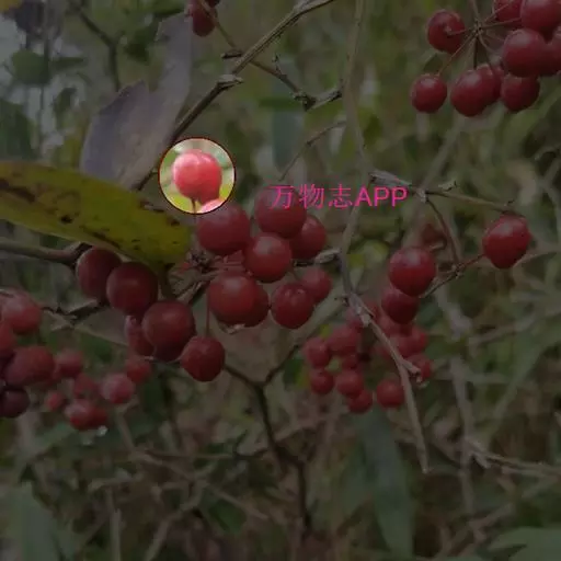 浆果球形,直径5-10毫米,鲜红色。花期6-7月,果期8-9月。