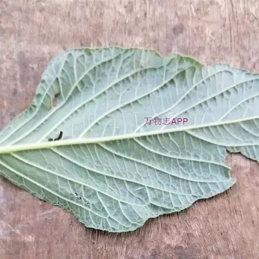 叶片卵形或菱状卵形,长3-4.5厘米,宽1.5-2.5厘米,顶端急尖或微凹,具凸尖,基部楔形,边缘波状或有不明显锯齿,微粗糙,上面近无毛,下面疏生柔毛;叶柄长1-2.5厘米,有柔毛。