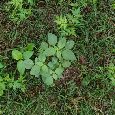 绿穗苋(学名:Amaranthus hybridus L. )是苋科、苋属一年生草本植物,高可达50厘米;茎直立,叶片卵形或菱状卵形,基部楔形,上面近无毛,下面疏生柔毛;叶柄有柔毛。花序顶生,细长,由穗状花序而成,中间花穗最长;苞片及小苞片钻状披针形,中脉坚硬,绿色,花被片矩圆状披针形,中脉绿色;胞果卵形,环状横裂,种子近球形,7-8月开花,9-10月结果。