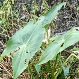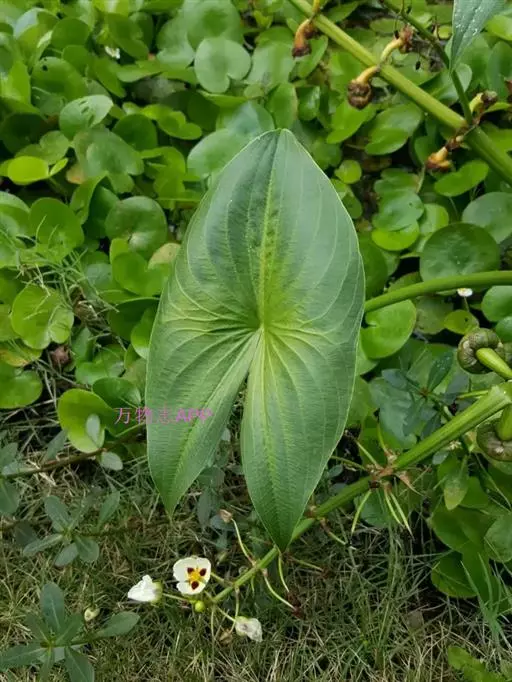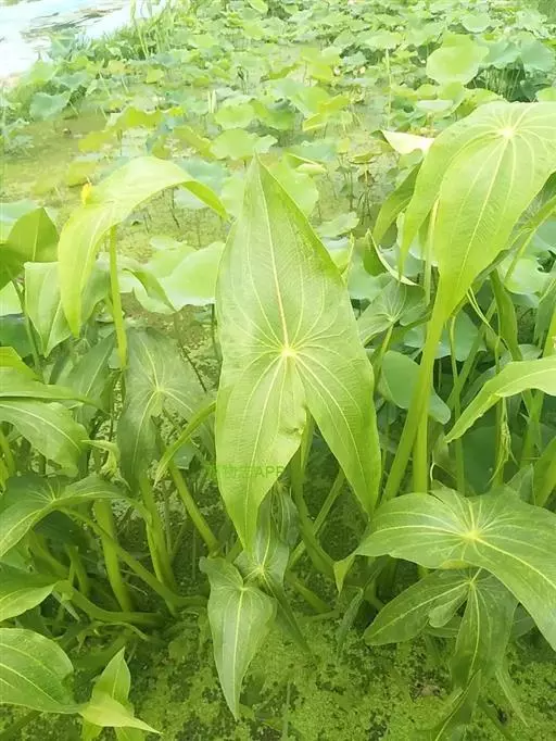 慈姑(学名:Sagittaria trifolia L. var. sinensis (Sims.) Makino )泽泻科多年生草本植物,生在水田里,叶子像箭头,开白花。地下有球茎,黄白色或青白色,以球茎作蔬菜食用。可以吃。也作茨菰。本变种与原变种不同在于:植株高大,粗壮;叶片宽大,肥厚,顶裂片先端钝圆,卵形至宽卵形;匍匐茎末端膨大呈球茎,球茎卵圆形或球形,可达5-8×4-6厘米;圆锥花序高大,长20-60厘米,有时可达80厘米以上,着生于下部,具1-2轮雌花,主轴雌花3-4轮,位于侧枝之上;雄花多轮,生于上部,组成大型圆锥花序,果期常斜卧水中;果期花托扁球形,直径4-5毫米,高约3毫米。种子褐色,具小凸起。