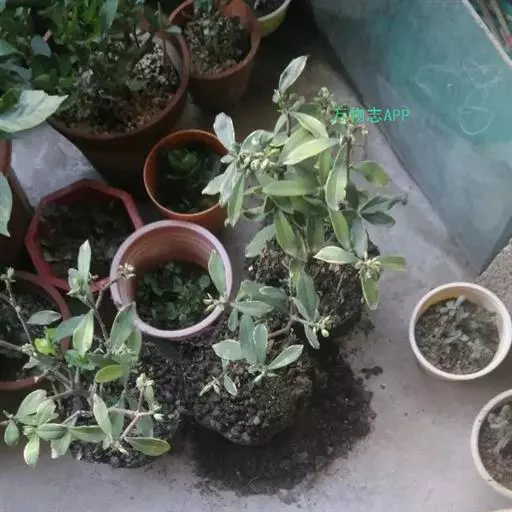 毛瑞香(var.atrocaulis Rehd) :又叫八爪金龙。花被外侧有灰黄色的绢毛,花朵白色,芬芳;果熟时橙色;枝深紫色。